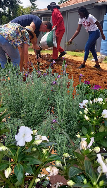 With three decades of horticultural expertise and a trailer-load of compost, jasmine, tickey creeper, spekboom, dietes, shovels and rakes, Ladybird Landscapes facilitated the hands-on part of the day.