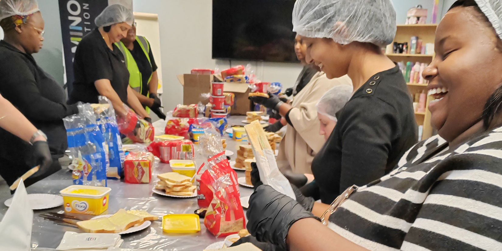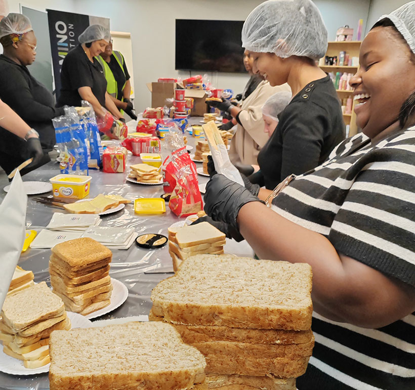 It was a day of making some great board decisions. Bread boards were the order of the day as the staff of the Canway (Pty) Ltd Plant at Southgate Business Park tackled the only action item on the agenda: making peanut butter sandwiches for The Domino Foundation’s South Nutrition programme which operates out of Kingsway Church International (KCi), Doonside.