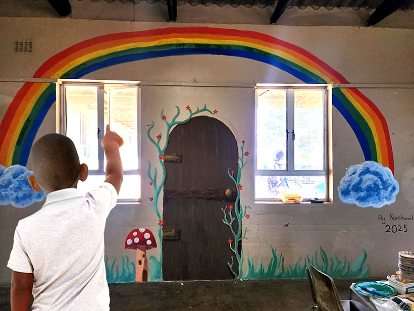 The cohort of a dozen muralists had ventured out to Inanda Primary School as part of Northwood’s Grade 9 Community Connect Week Outreach programme. Under the guidance of Design teacher, Nomusa Godoma, they set about patching and preparing the chosen classroom’s walls for bursts of colour and design. Nomusa explained: “A sense of community is at the heart of who we are. The Outreach programme brings much-needed assistance to others in need of support. The mural-painting project, which took the “Young Squires” 3 days to complete, was just one of a range of community and environmental initiatives our Grade 9s undertook.”